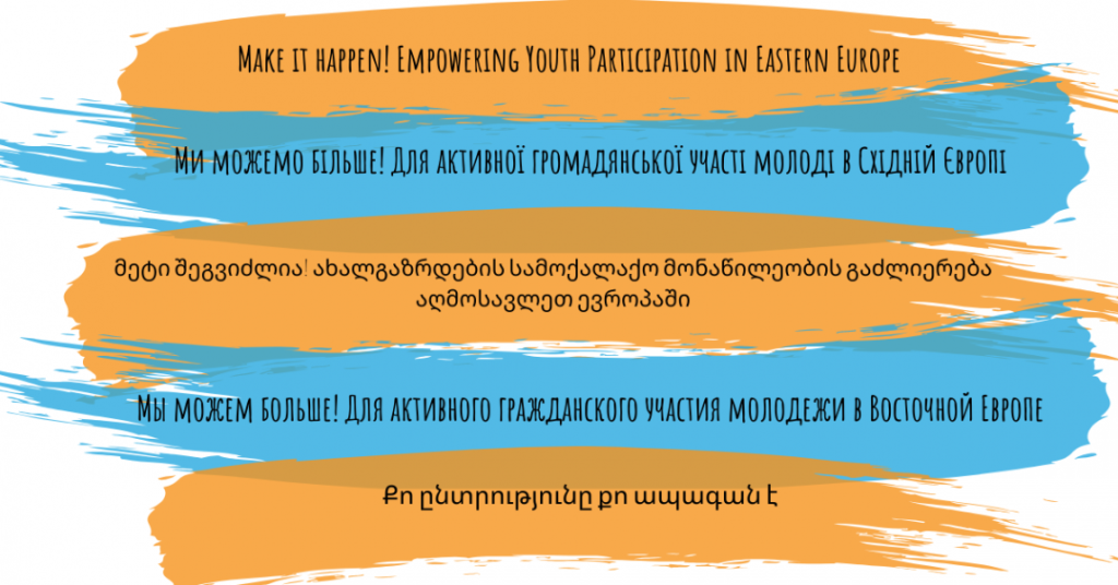 - die zivilgesellschaftliche Kooperation zum Thema der Jugendpartizipation innerhalb von sowie zwischen Russland, der Ukraine, Georgien, Armenien und Deutschland zu fördern;