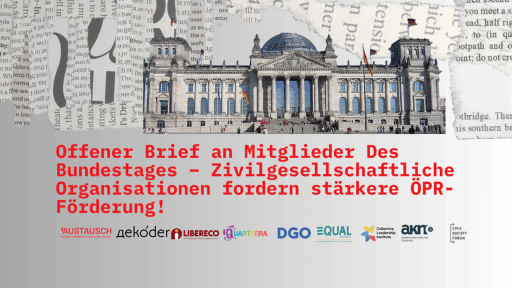 In einem offenen Brief an Bundestagsabgeordnete machen wir deutlich: Eine kluge Außen- und Sicherheitspolitik braucht mehr als Diplomatie und Verteidigung – sie braucht starke zivilgesellschaftliche Partnerschaften in Osteuropa, dem Südkaukasus und Zentral- und Nordasien.