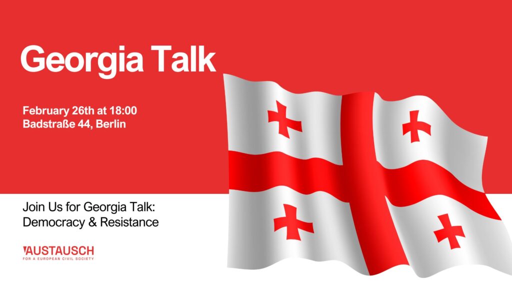 On February 26th at 18:00, Austausch warmly invites you to Georgia Talk—a panel discussion followed by an informal gathering with Georgian food and wine.